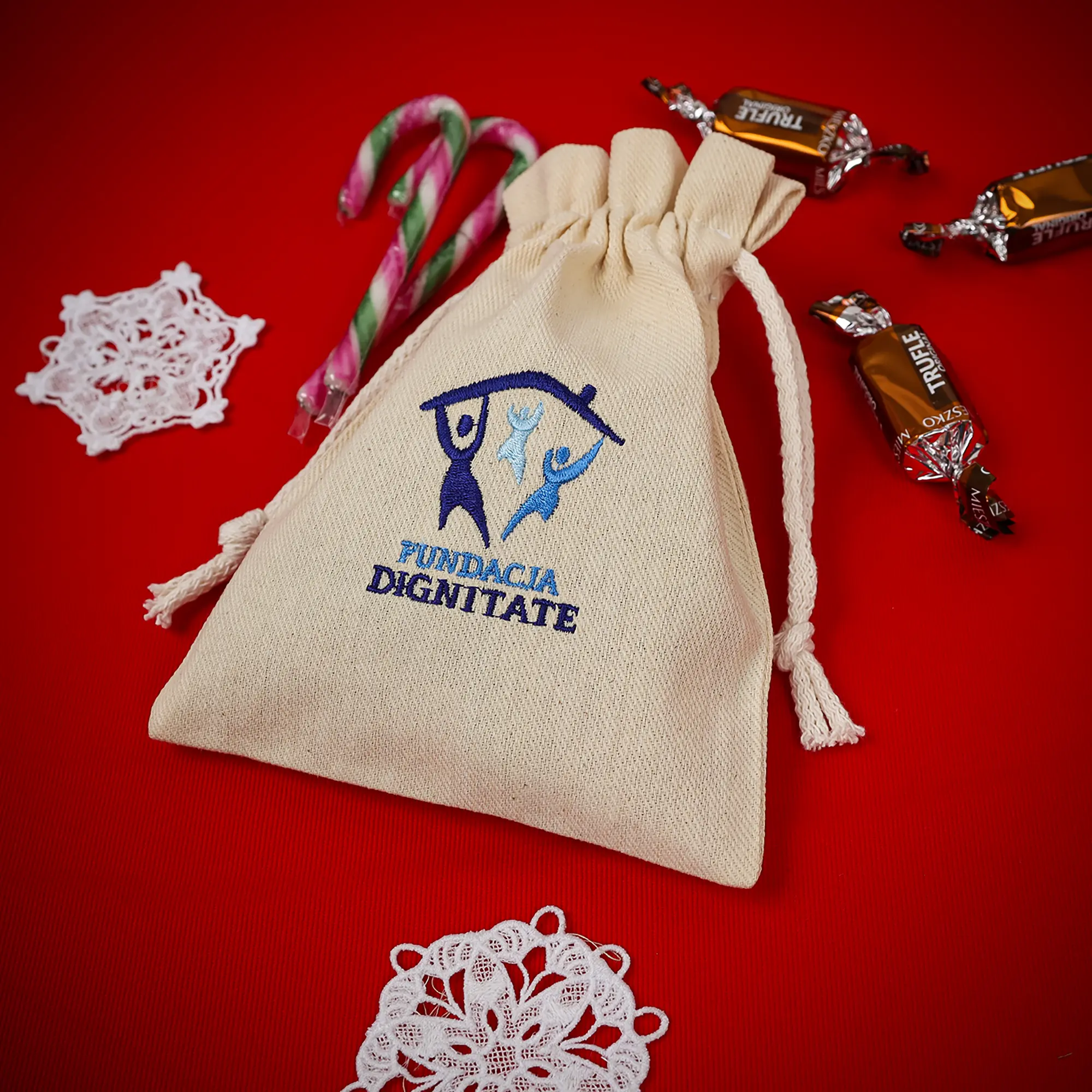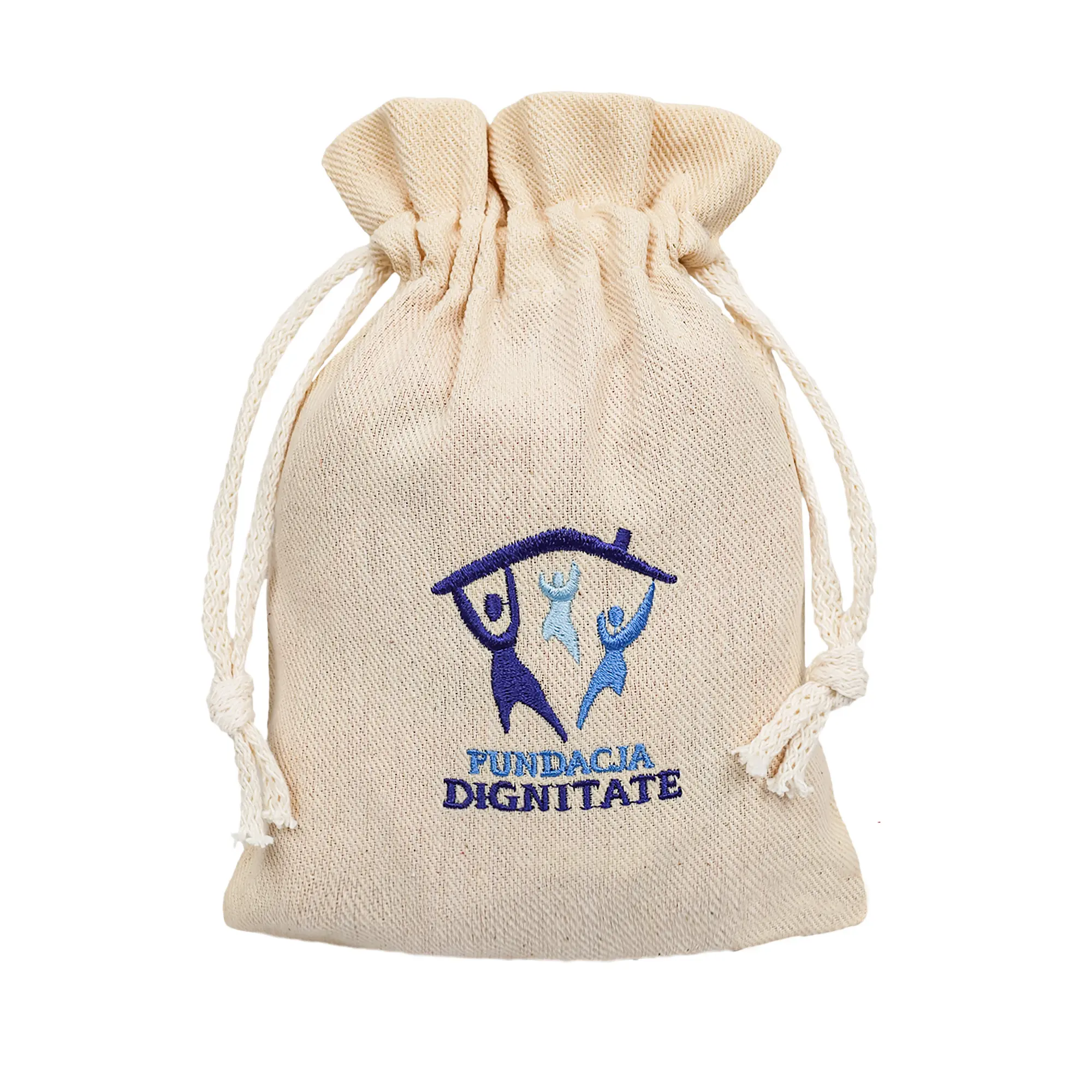 Woreczki z drelichu bawełnianego z haftowanym logo Fundacji Dignitate 👌🏻