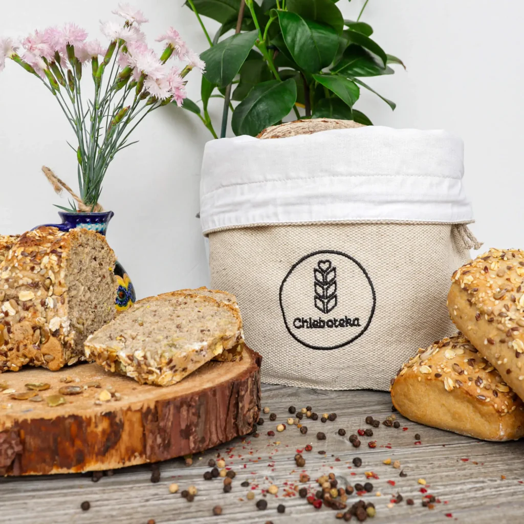 Lniane opakowania na chleb z haftem – indywidualny projekt dla piekarni Chleboteka