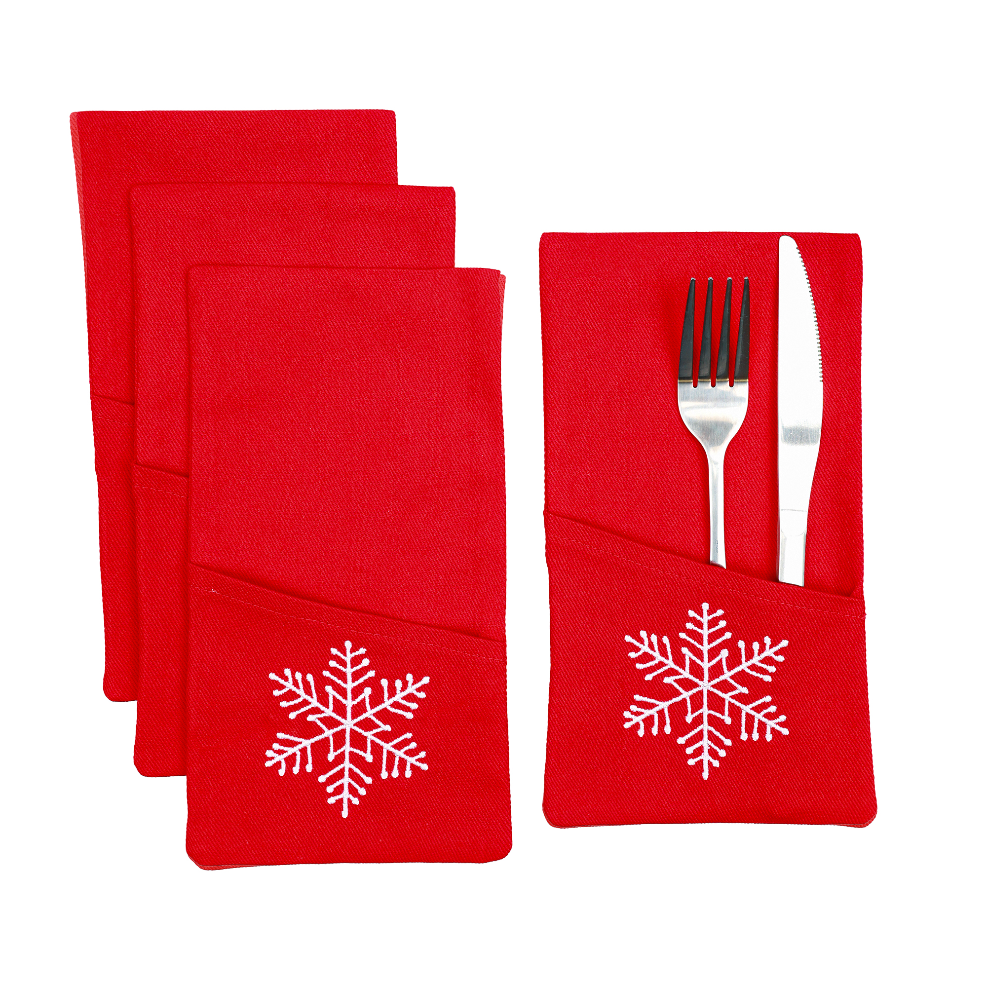 Bawełniane etui na sztućce z haftem świątecznym
