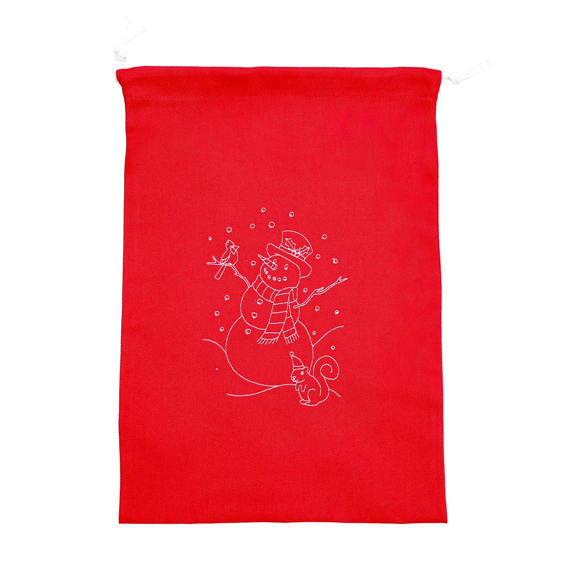 Bawełniany czerwony worek na prezent świąteczny – bałwanek