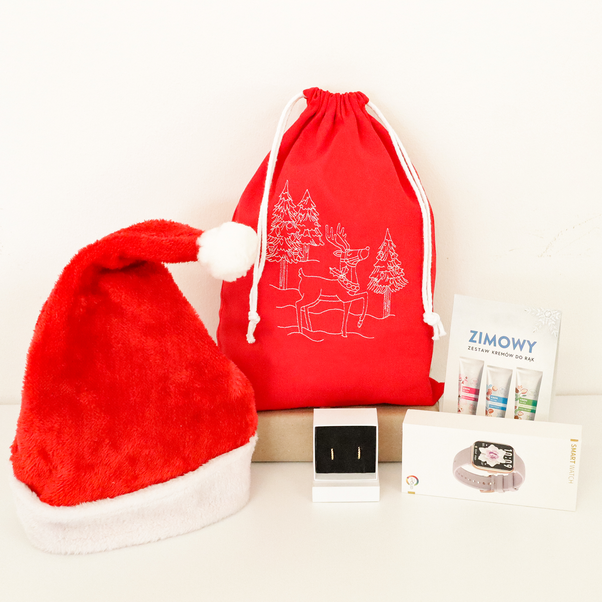 Bawełniany czerwony worek na prezent świąteczny – różne wzory