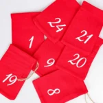 Woreczki bawełniane do kalendarza adwentowego z numerami – zestaw czerwonych woreczków z haftem