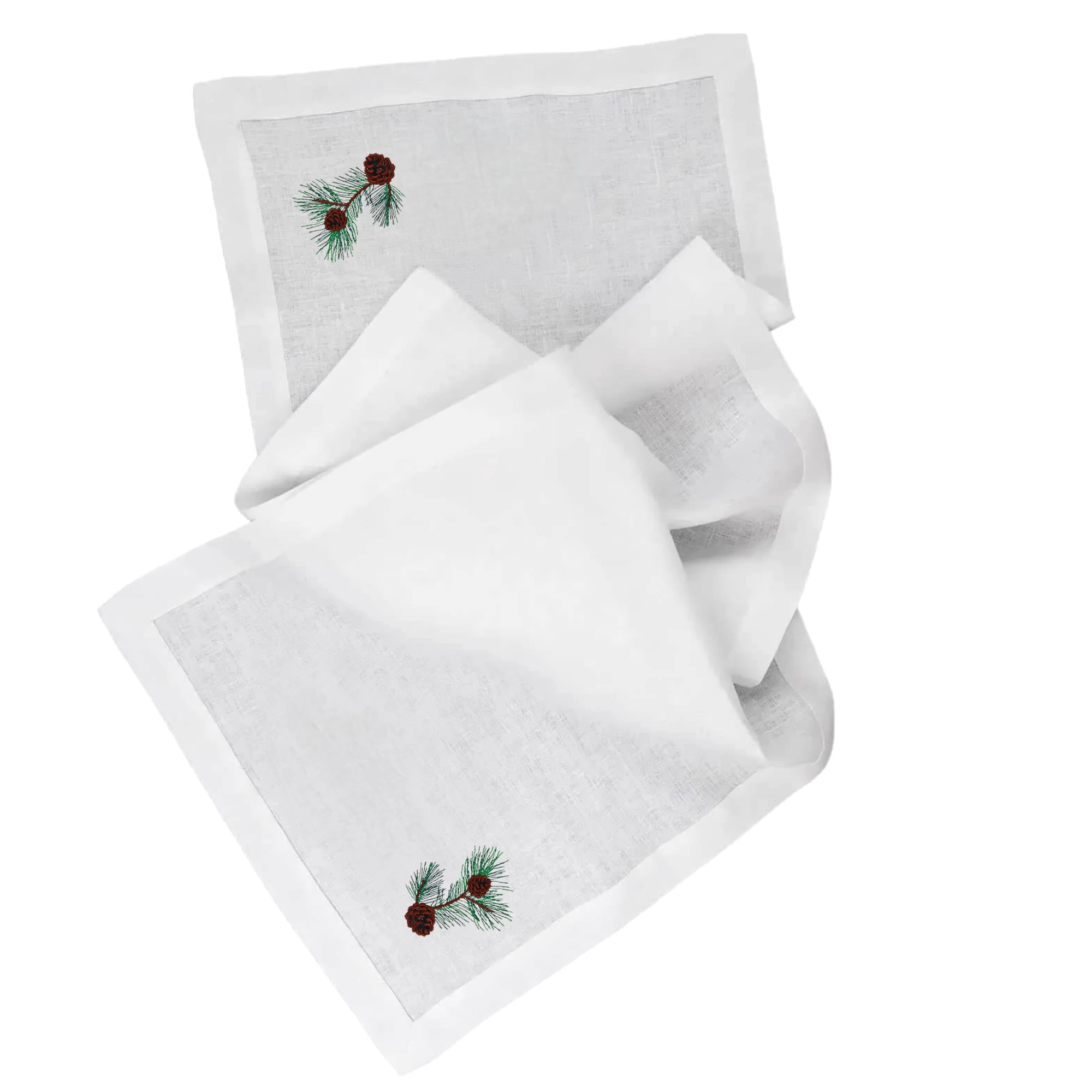 Bieżnik lniany z haftem sosny – naturalna elegancja na Twój stół