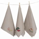 Zestaw 3 ścierek lnianych z haftem – jesień