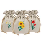 Lniane woreczki dekoracyjne – kwiaty polskie – zestaw 3 szt.