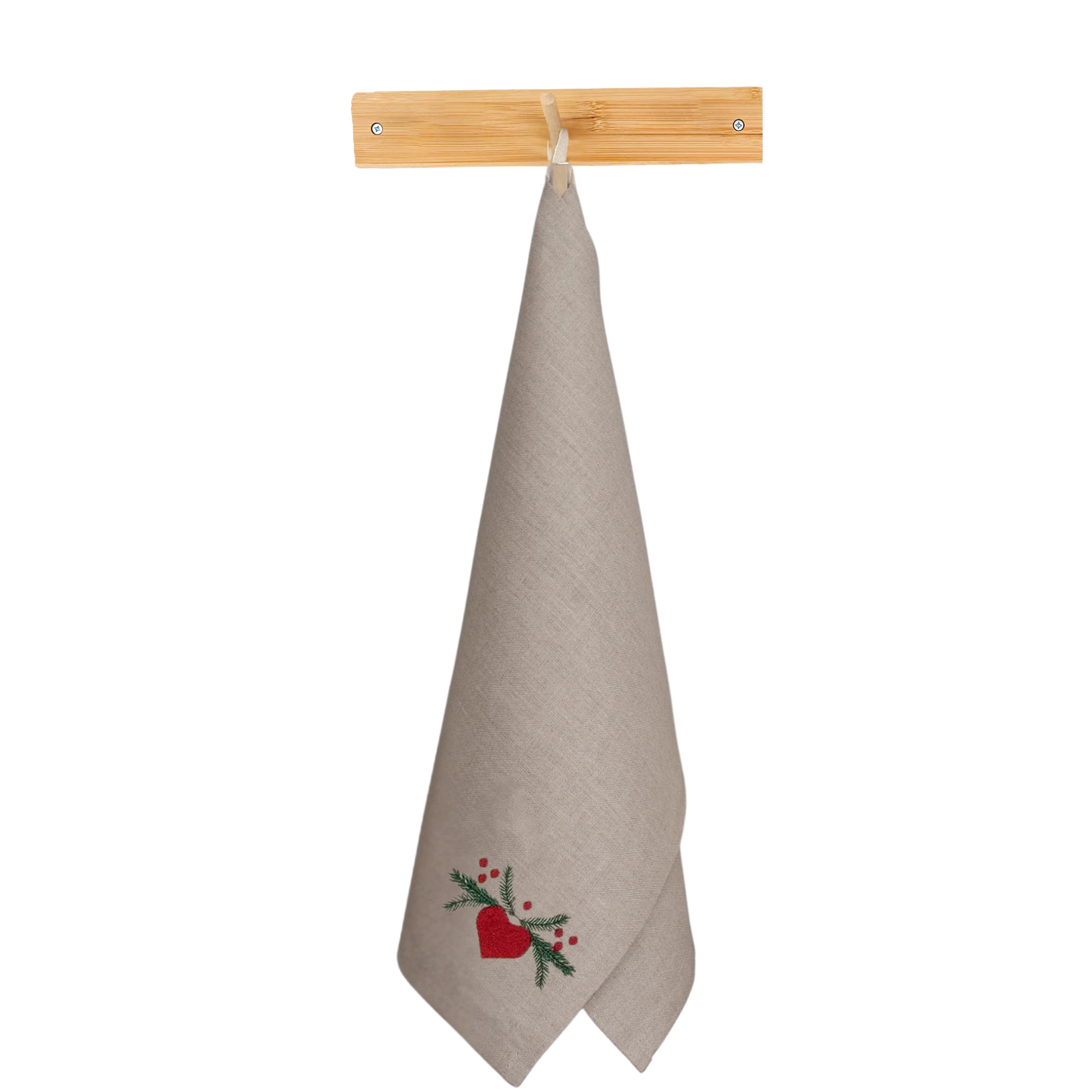Lniana ścierka kuchenna z haftem świątecznym – serce