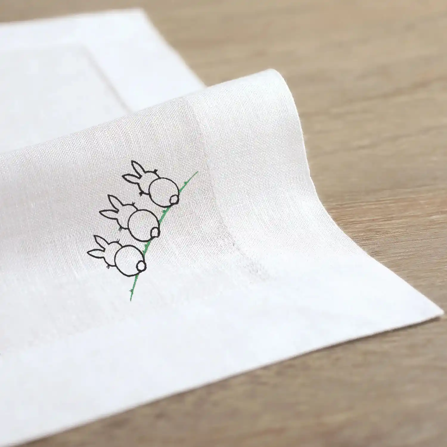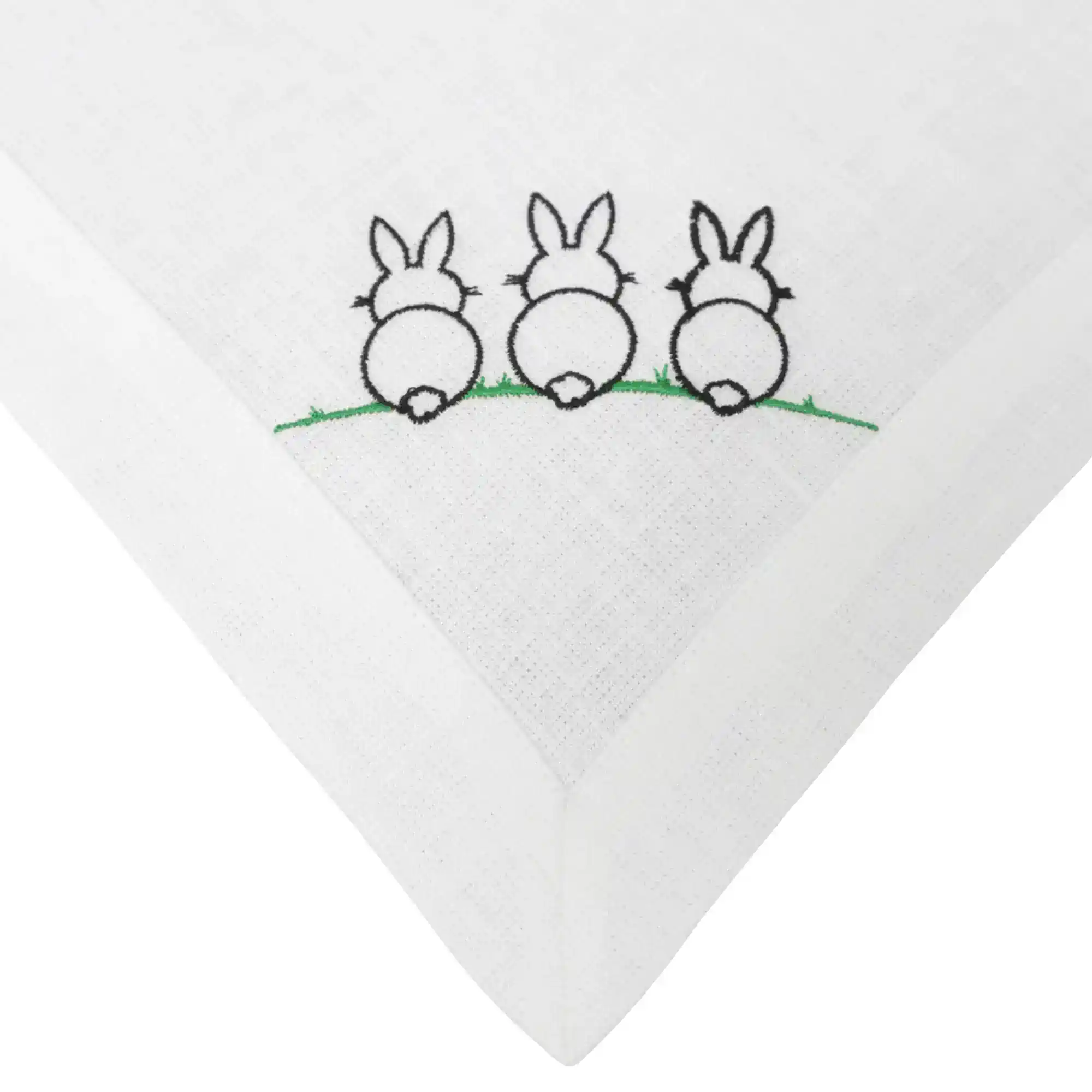 Lniana serweta z haftem zające i listwą uszyta z polskiego lnu.