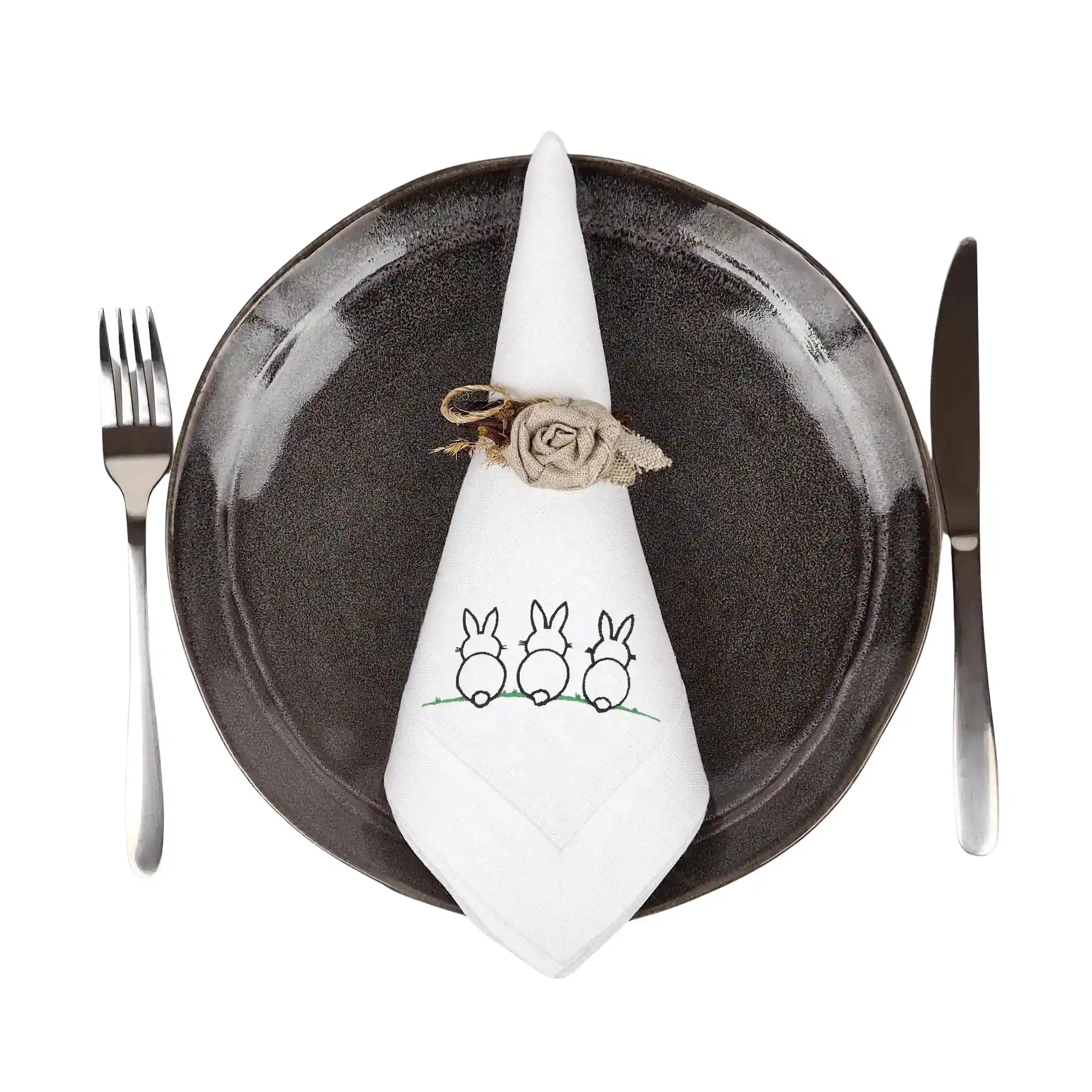16 marca 2026Lniana serweta na Wielkanoc – biała z listwą i haftem – zające