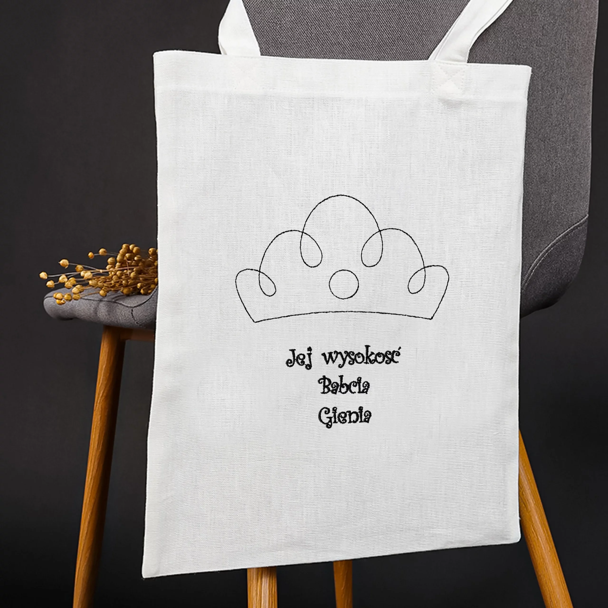 W tym roku podaruj jej prezent, dzięki któremu poczuje się jak królowa! 👸🏻 Lniana torba z haftem ” Jej wysokość babcia (imię)” to wyjątkowy i zarazem bardzo użytkowy produkt, który spodoba się każdej babci. 💗