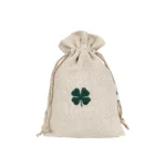 Lniany woreczek dekoracyjny – z haftem – koniczynka 15×20 cm
