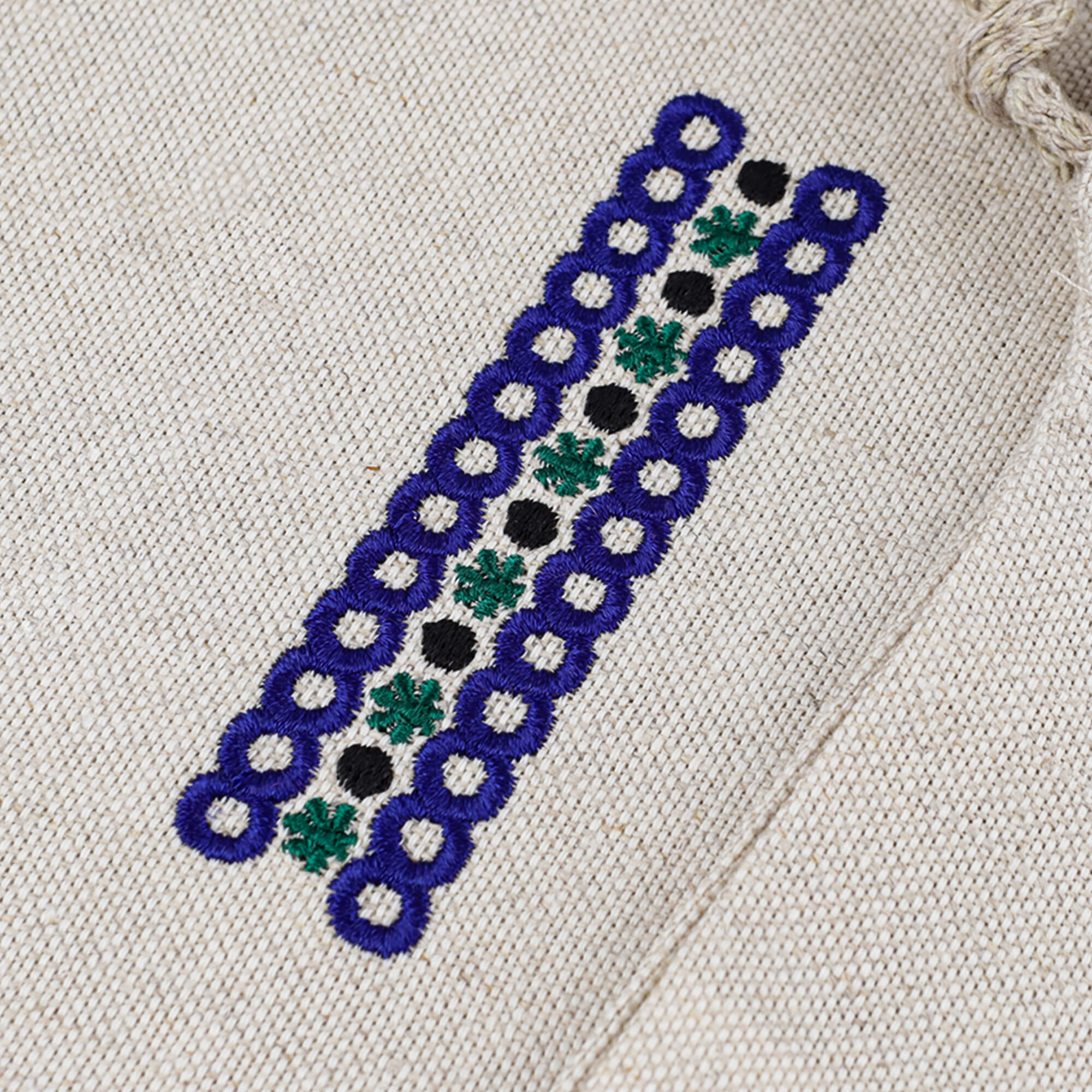 Zamiast druku wybieramy trwały haft, który nie blaknie, nie pęka i wygląda elegancko przez długie lata. To detal, który nadaje woreczkowi wyjątkowy charakter i sprawia, że jest produktem premium.