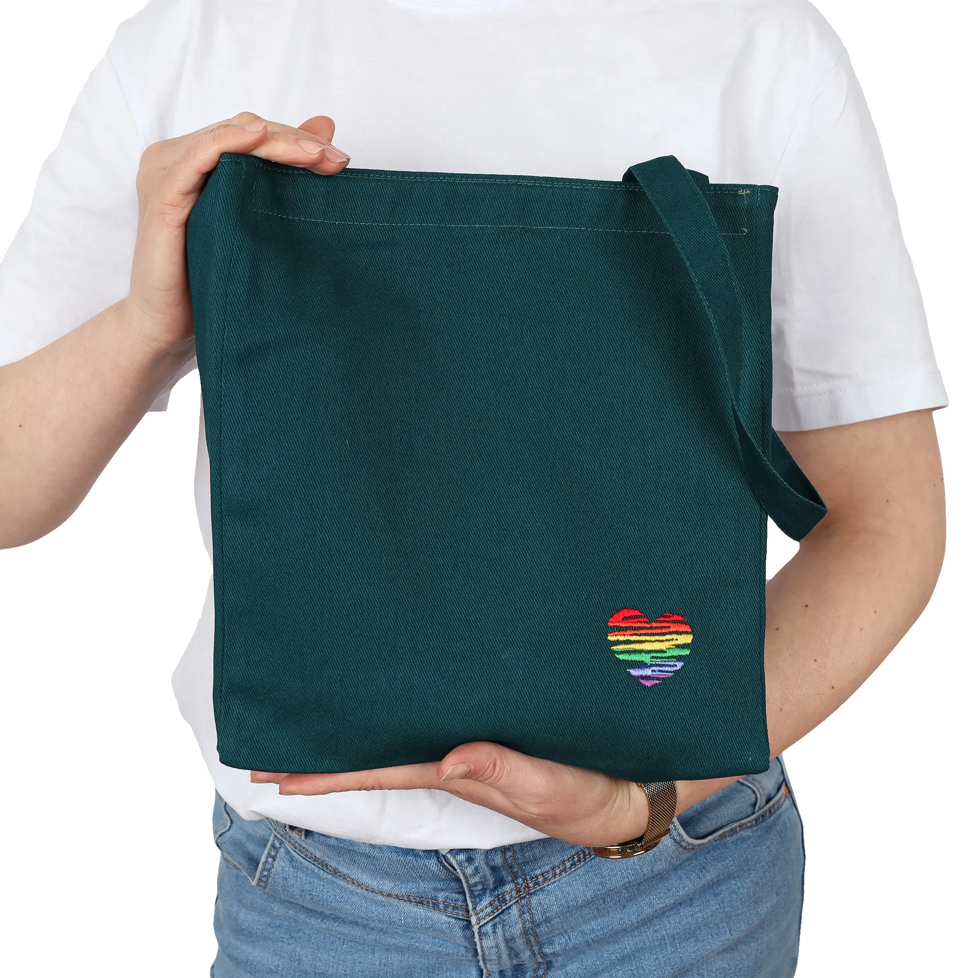 Lunch bag bawełniany z haftem – ciemna zieleń