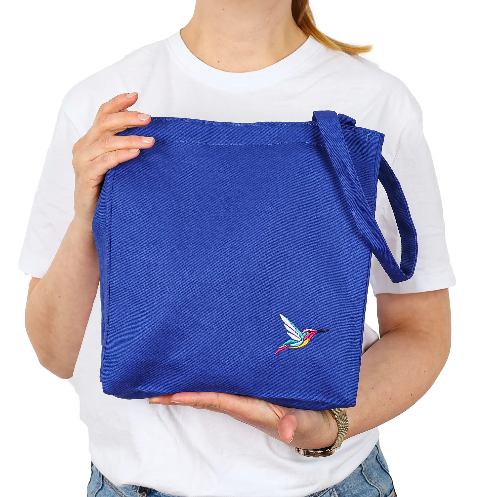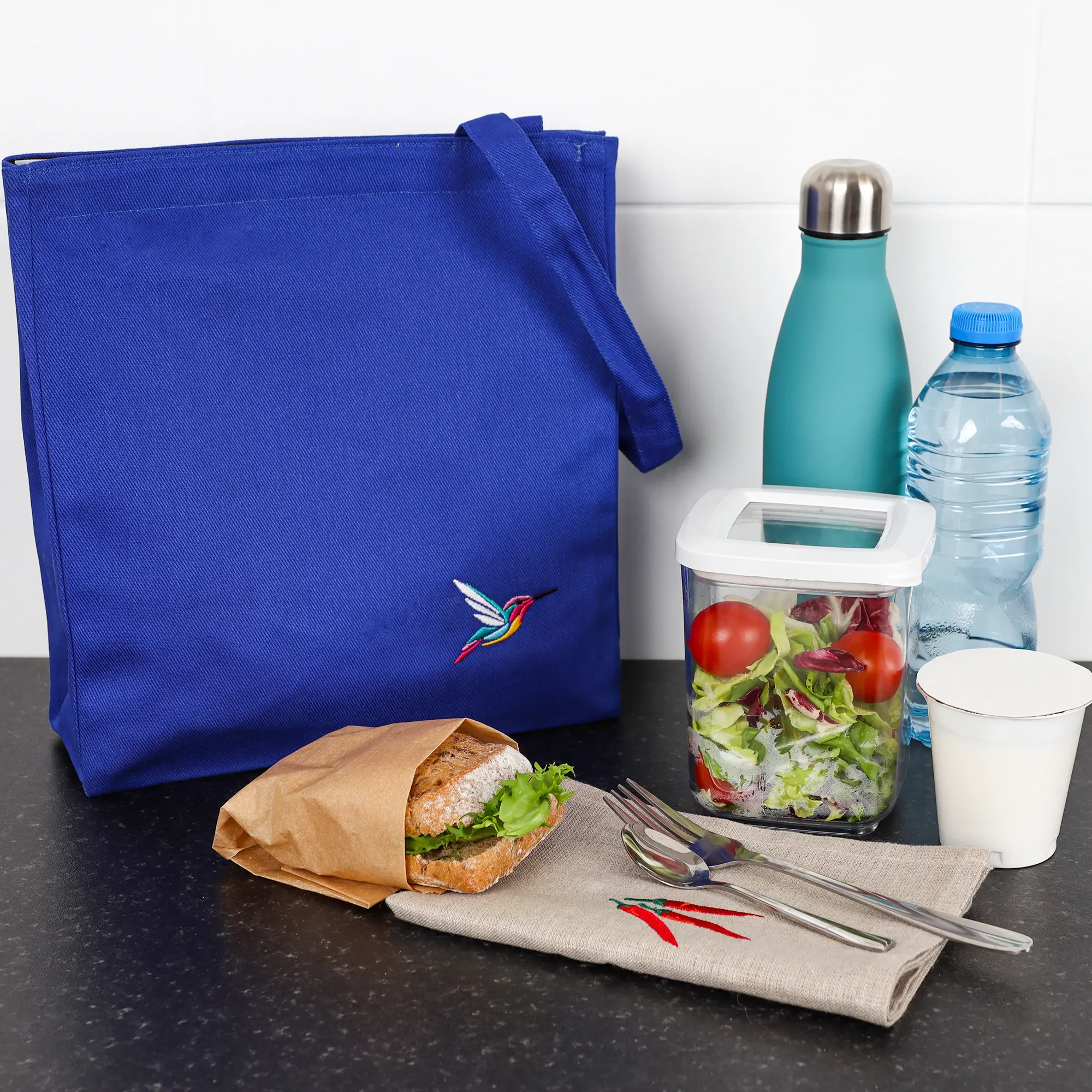 Lunch bag bawełniany z haftem – niebieski