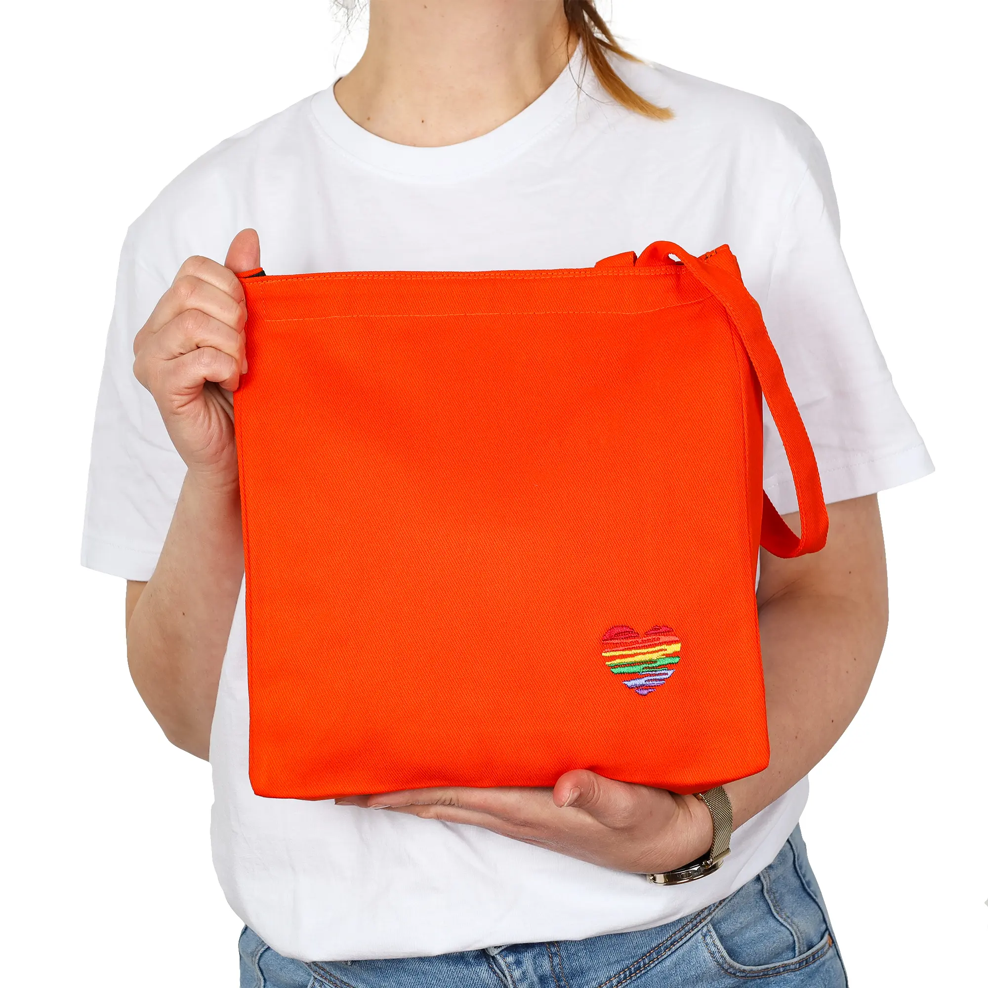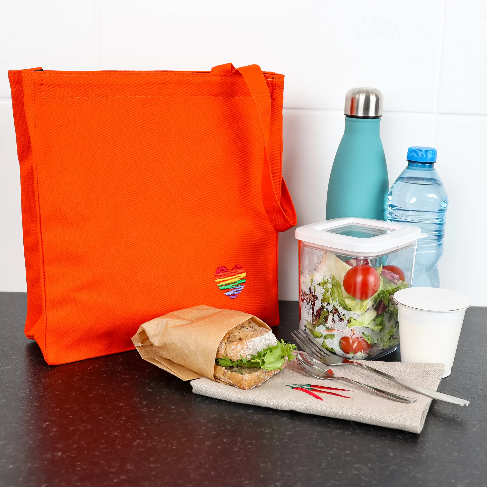 Lunch bag bawełniany z haftem – pomarańczowy