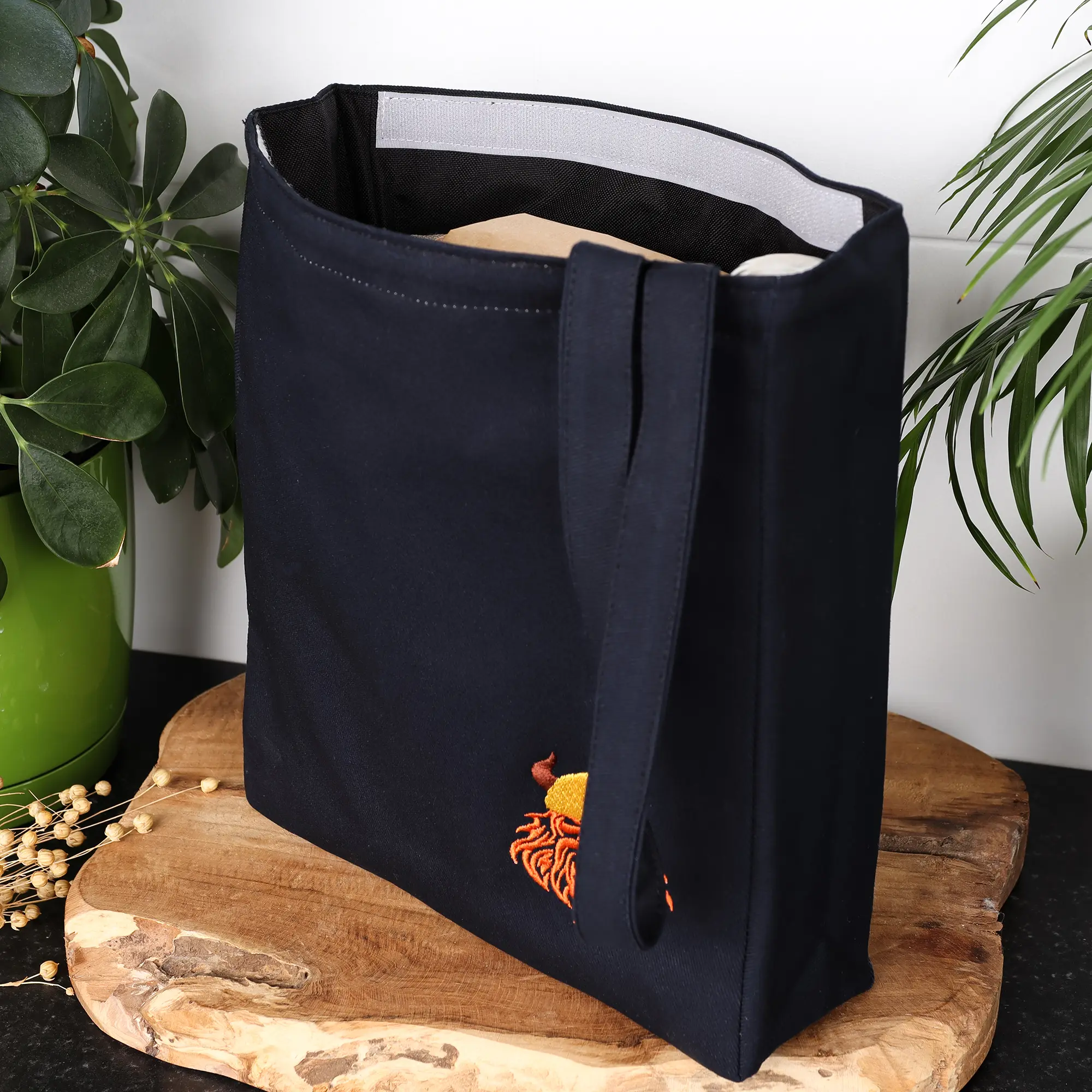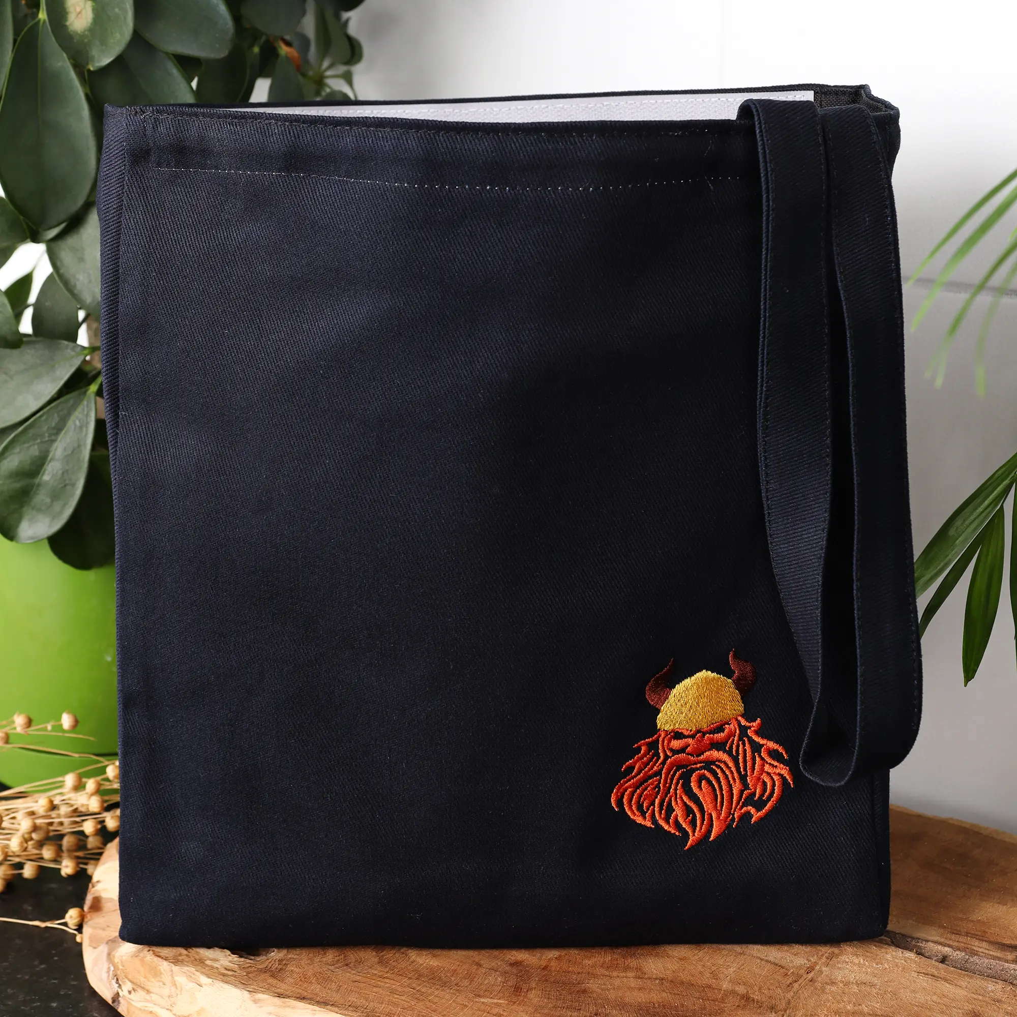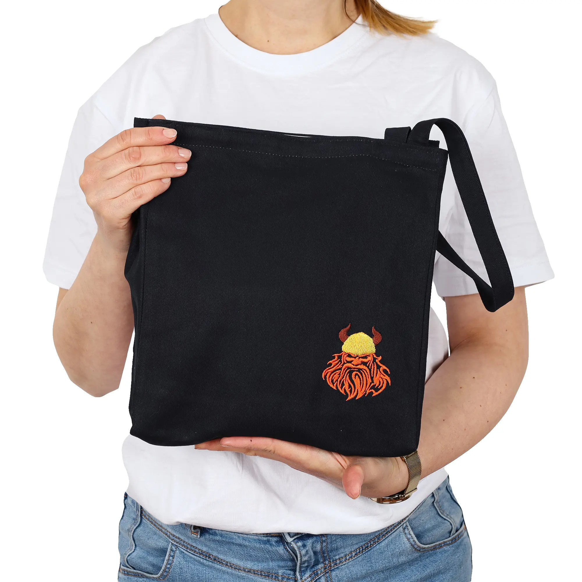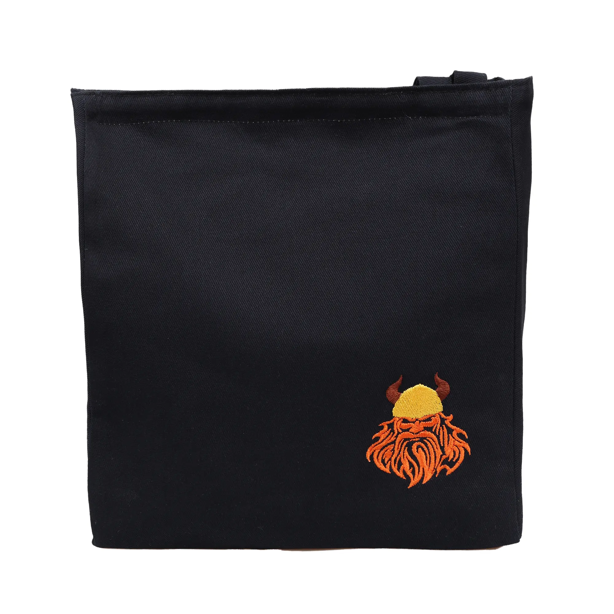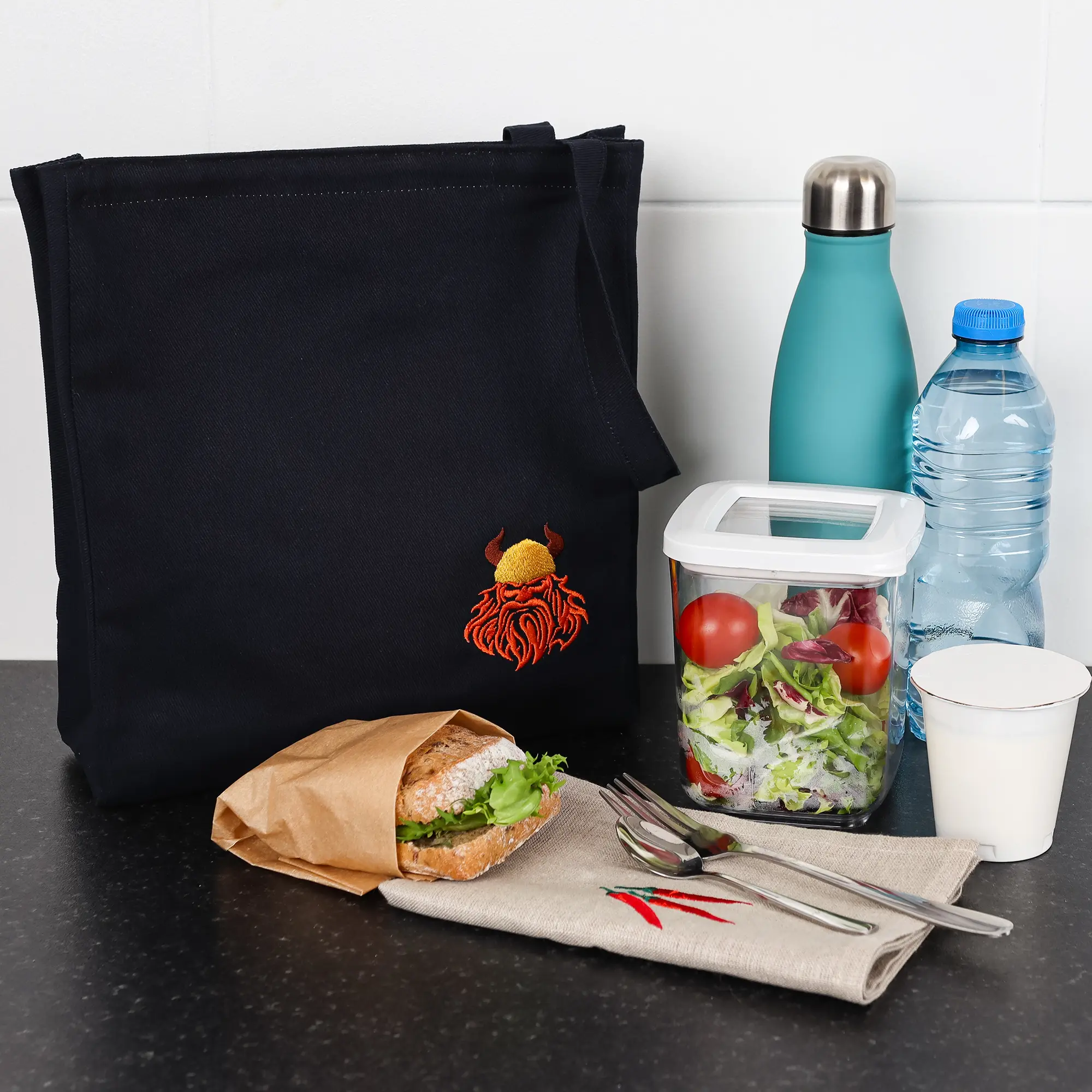 Napisz pierwszą opinię o „Lunch bag bawełniany z haftem wiking – czarny”