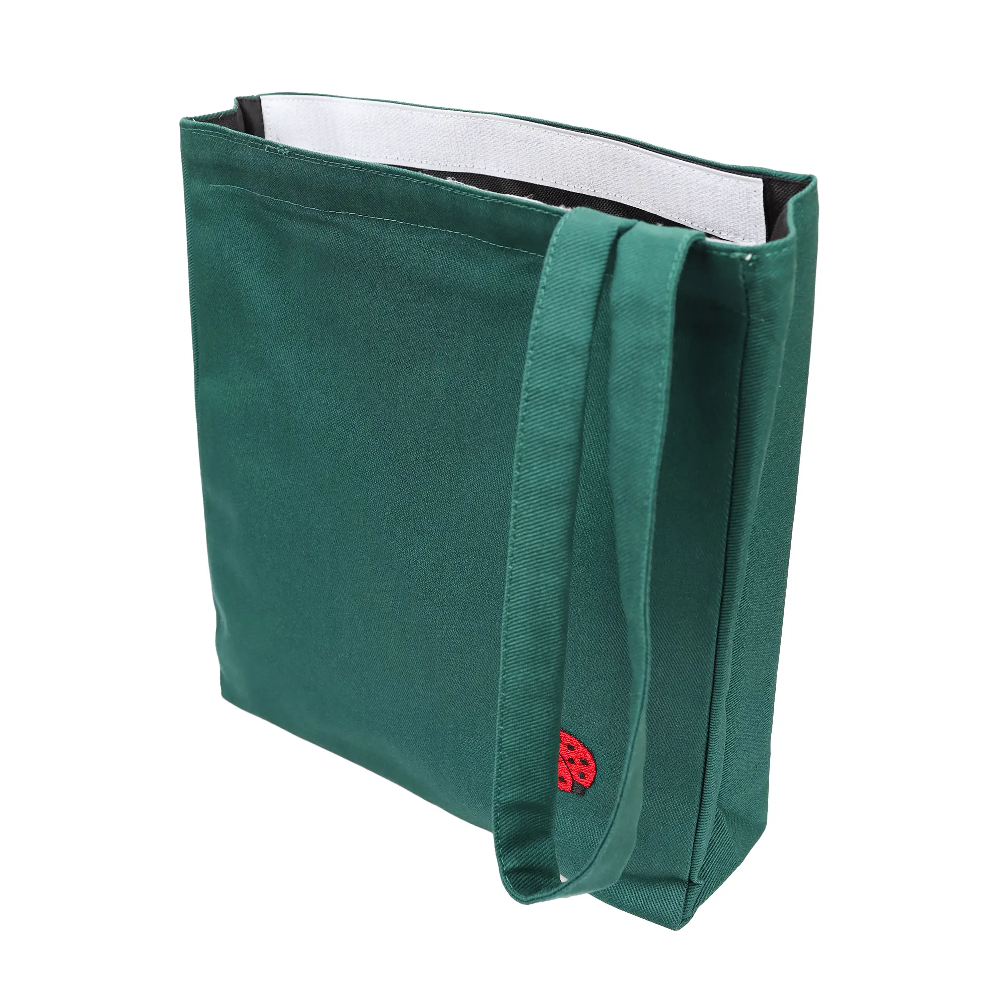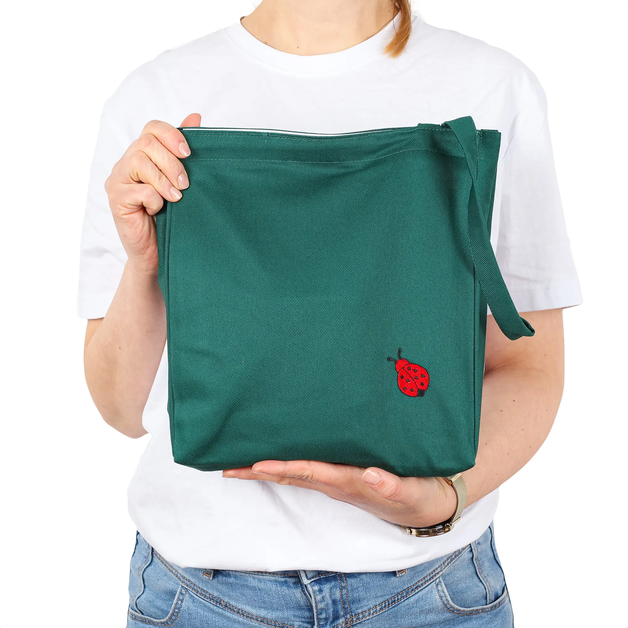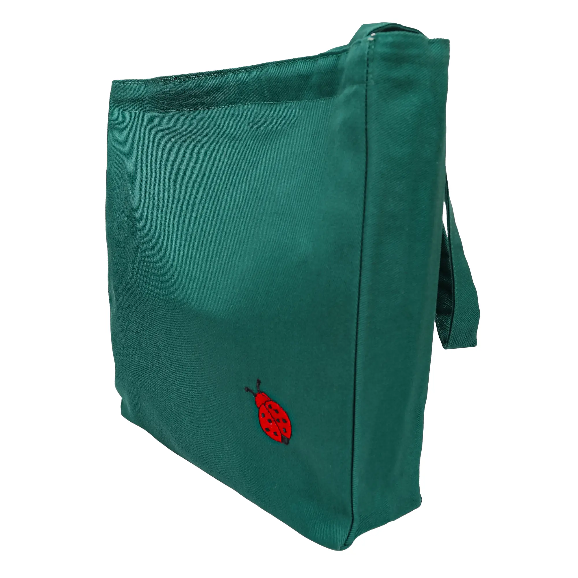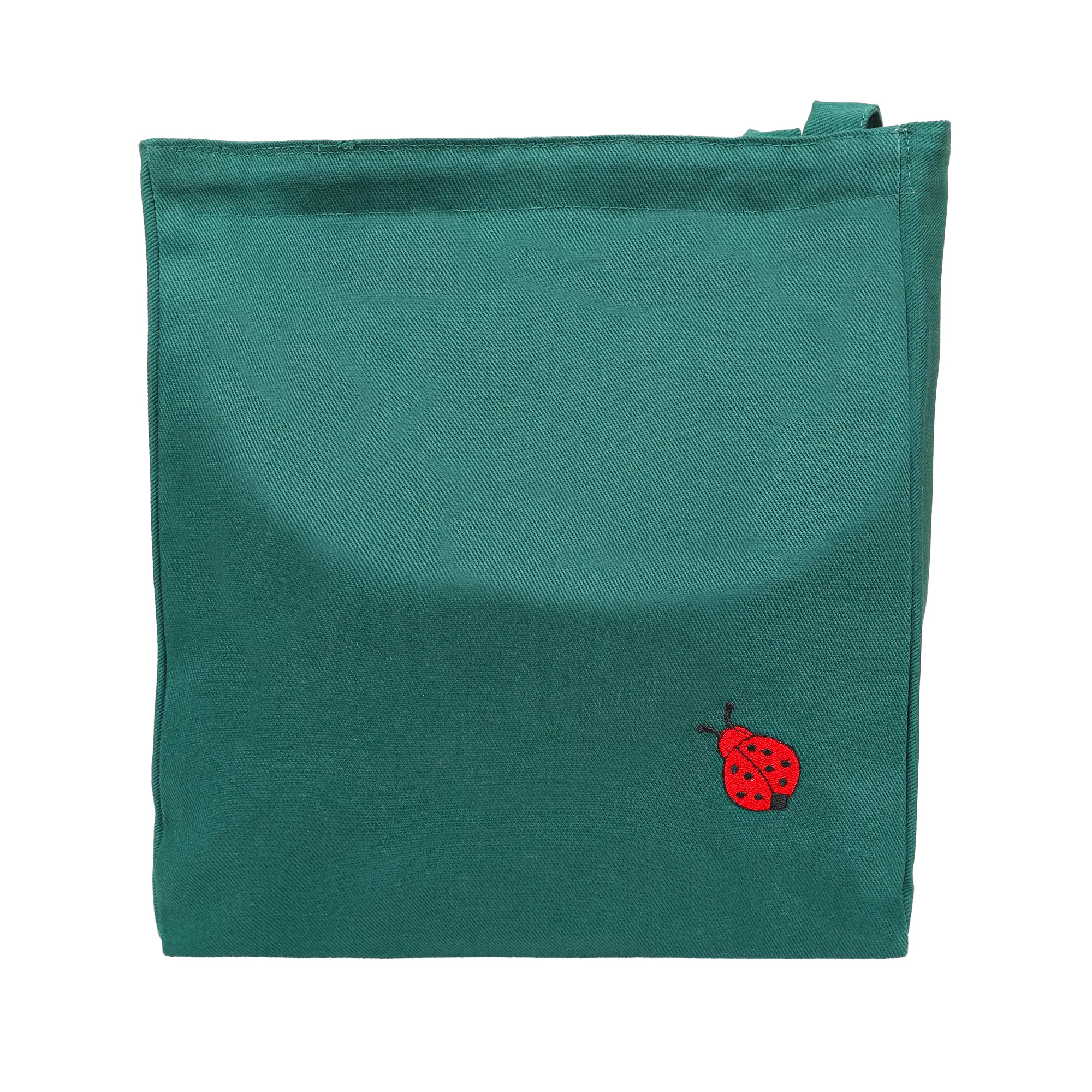 Bawełniany lunch bag/ torba na 2 śniadanie zielona z haftem i uchwytem