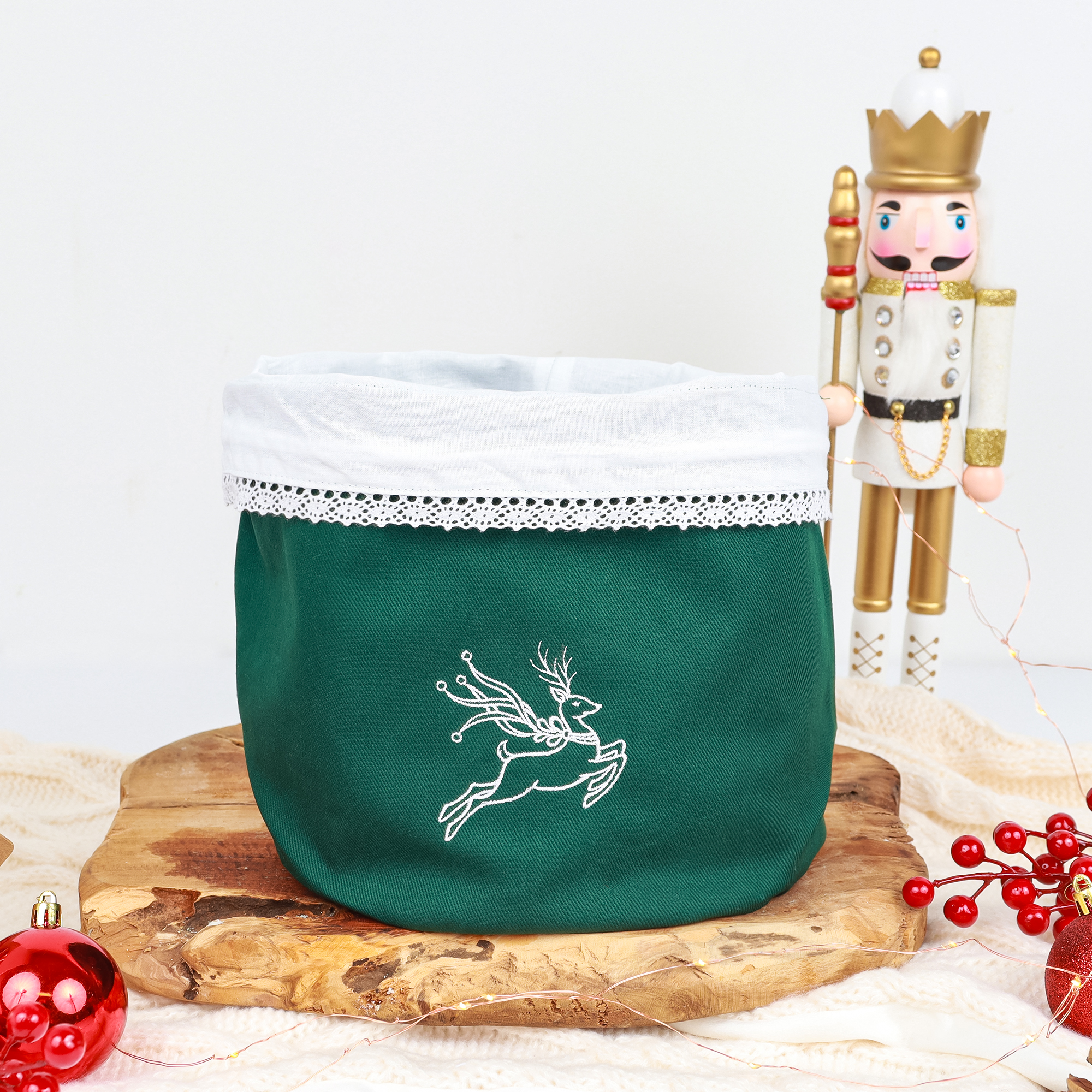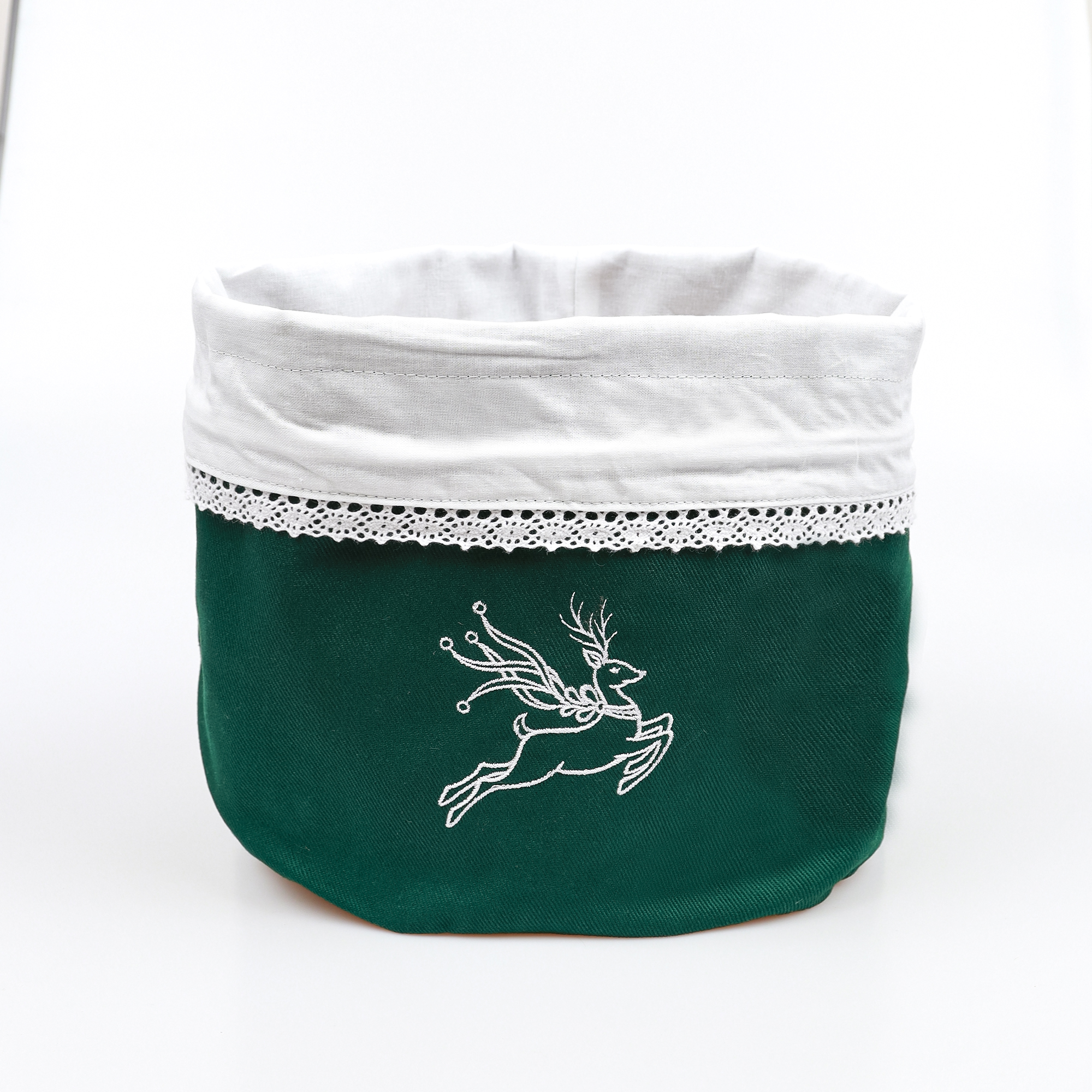 Bawełniana sakwa na pieczywo w stylu świątecznym z lnianą podszewką