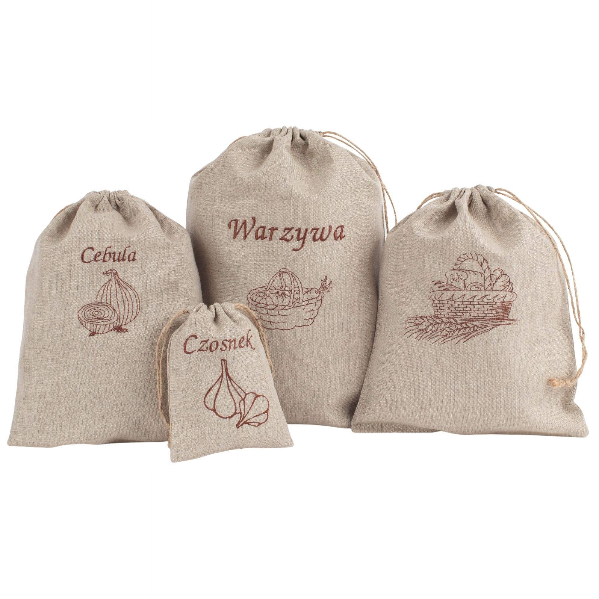 Lniane worki do przechowywania żywności – zestaw 4 sztuk z haftem