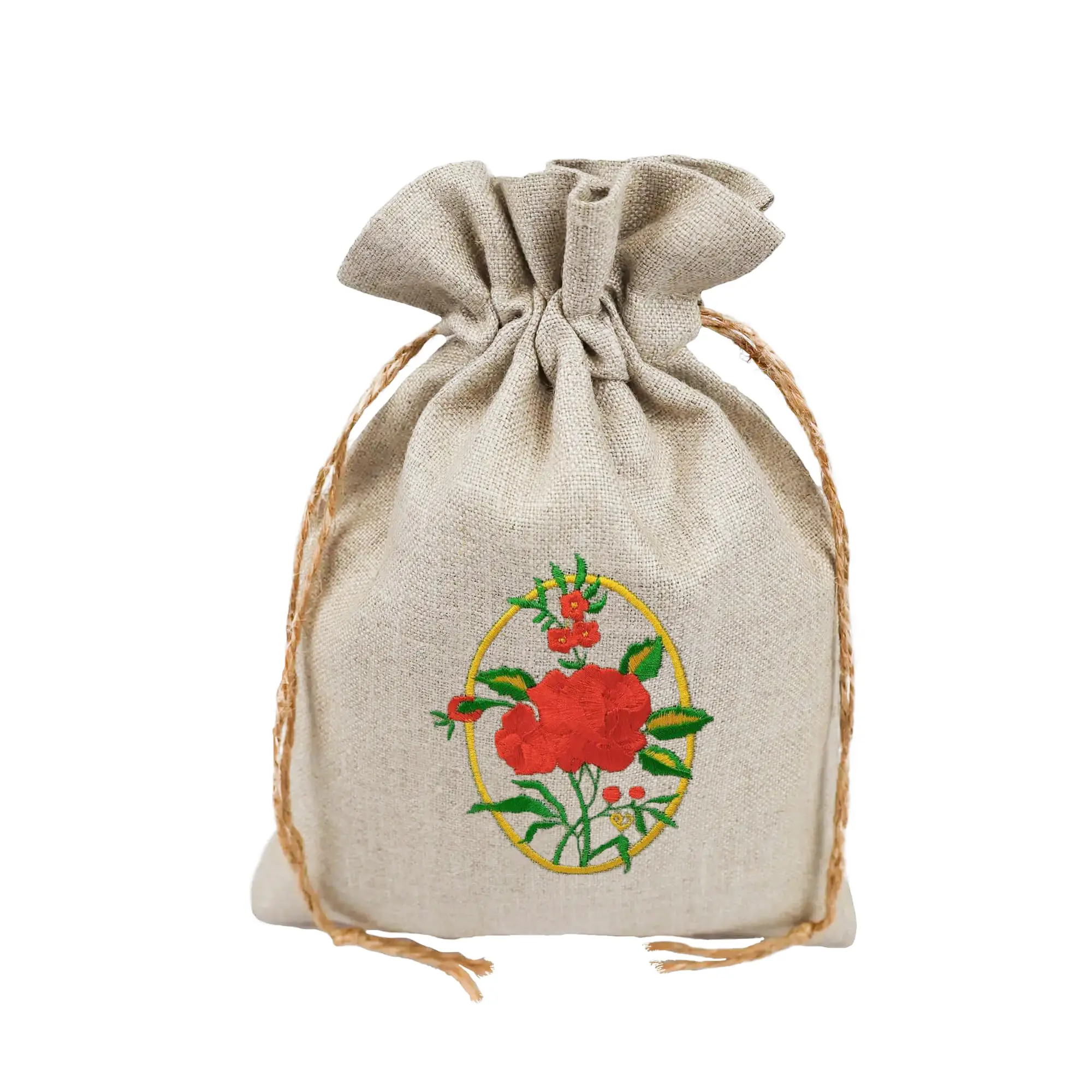 ekologiczne woreczki lniane z haftem – idealne do wręczania drobnych prezentów,