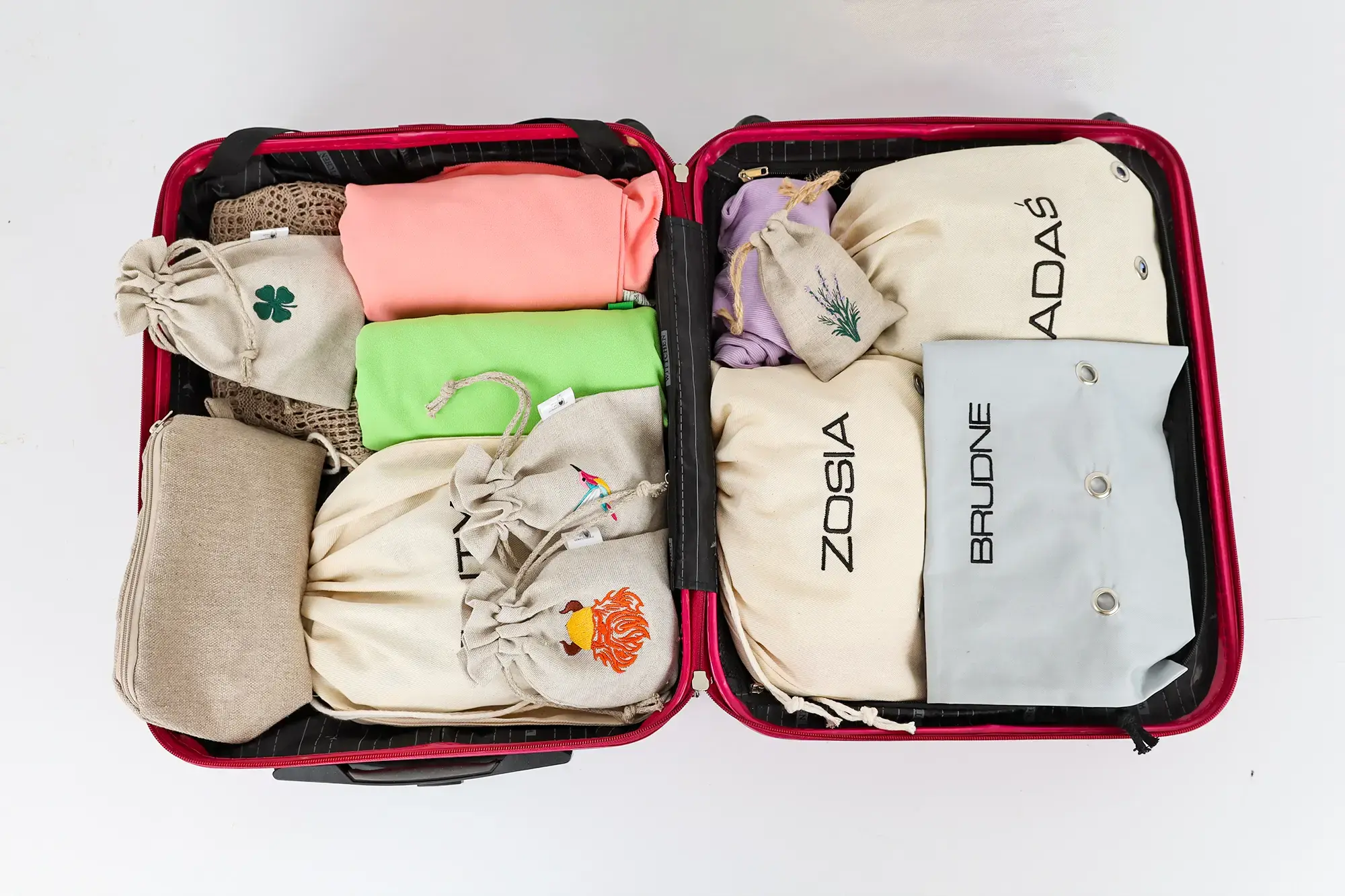 Dodatkowy atut? Worki do walizki szyte z naturalnych materiałów są wielokrotnego użytku – to wybór w duchu slow life, zero waste i estetyki, którą możesz zabrać ze sobą w podróż.