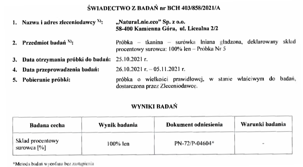 W jednej z analizowanych tkanin, opisywanych jako "lniane", wykryliśmy skład mieszany, zawierający syntetyczne dodatki. To pokazuje, jak nieuczciwe działania niektórych producentów mogą wprowadzać konsumentów w błąd poprzez niewłaściwe oznaczenia lub fałszywe deklaracje. Takie praktyki nie tylko narażają zdrowie konsumentów, ale też tworzyą niesprawiedliwą konkurencję dla firm dbających o jakość i zgodność z normami.